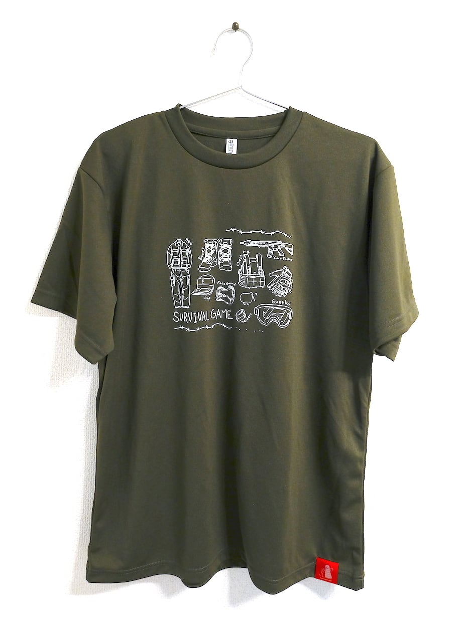サバイバルゲームで必要な装備をイラストにしました。 裏面は無地になります。 軽い着心地で吸水速乾にも優れサバゲーにも最適です。 小さい・大きいサイズも対応可能の場合がありますので、 お気軽にお問い合わせください。