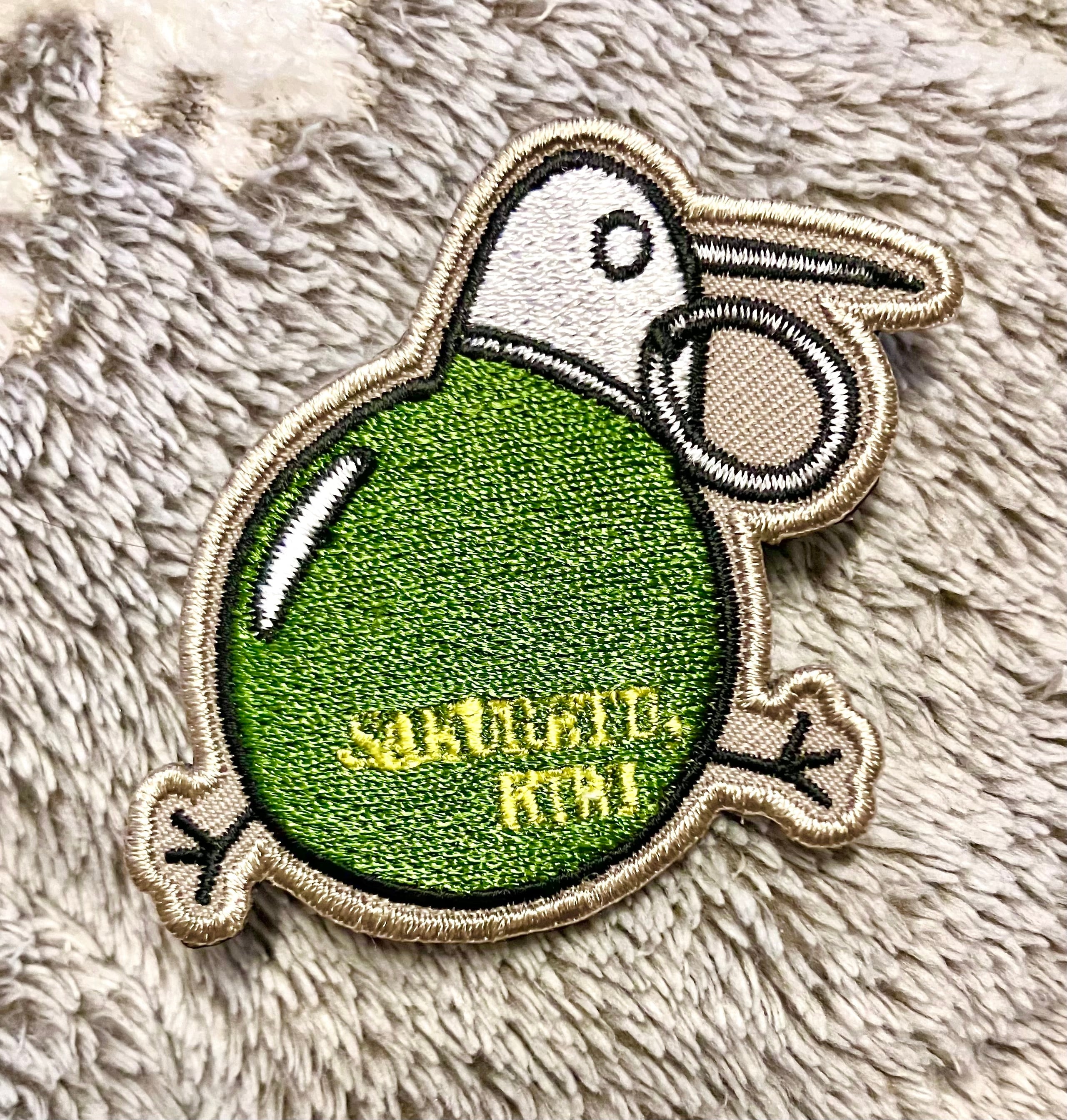 炸裂キウイ公式キャラのパッチ ODと赤と黄色がございます 裏面はベルクロです 大きさ 約縦5.5cm 約横6cm